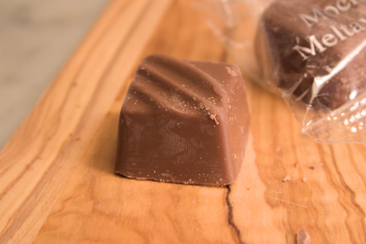 Velvety mocha chocolate center covered in Belgian milk chocolate.
