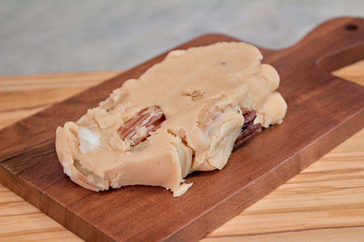 Creamy peanut butter fudge mixed with chewy marshmallow chunks and roasted pecans.